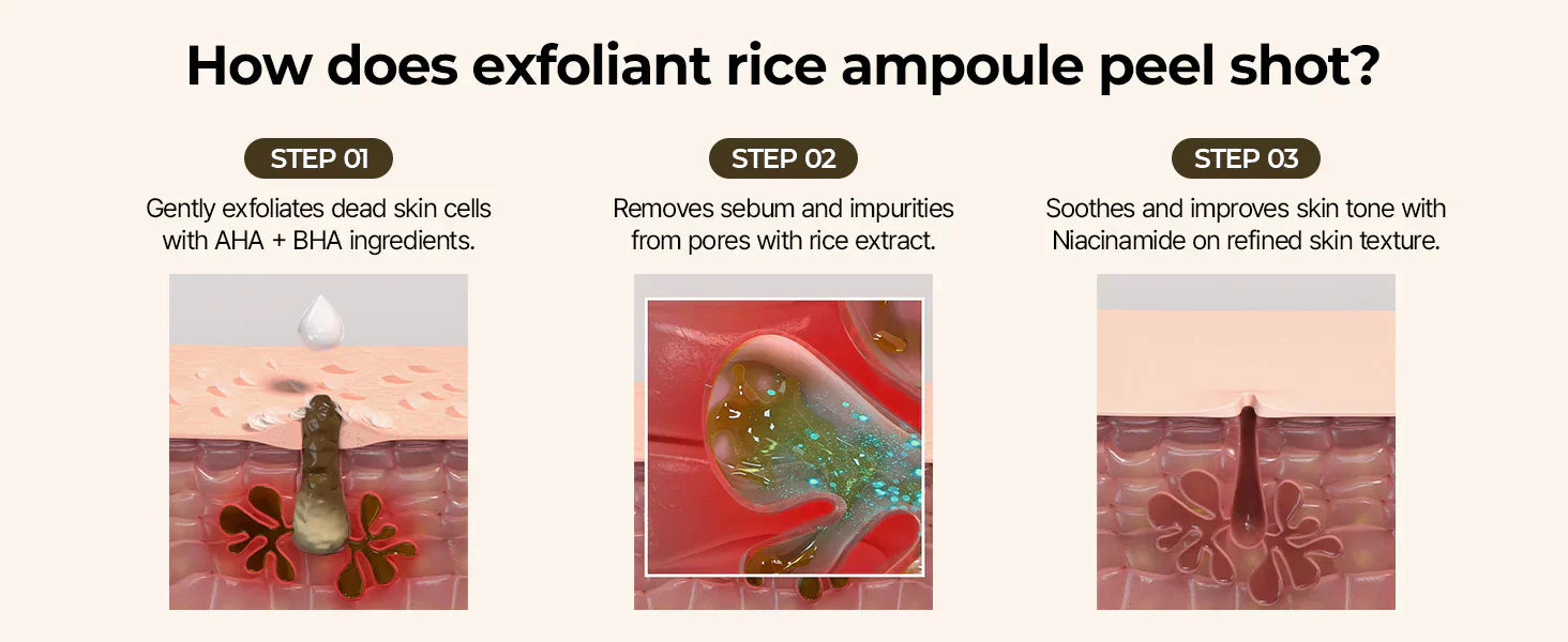 Powered by AHA, BHA, fermented rice extract, and niacinamide, this ampoule gently exfoliates, clears out pores, and restores your glow all in one simple step.